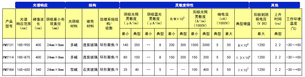 陽(yáng)靈敏度Anode Sensitivity at 800nm (peak) |