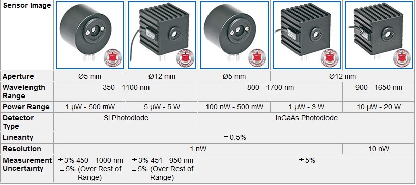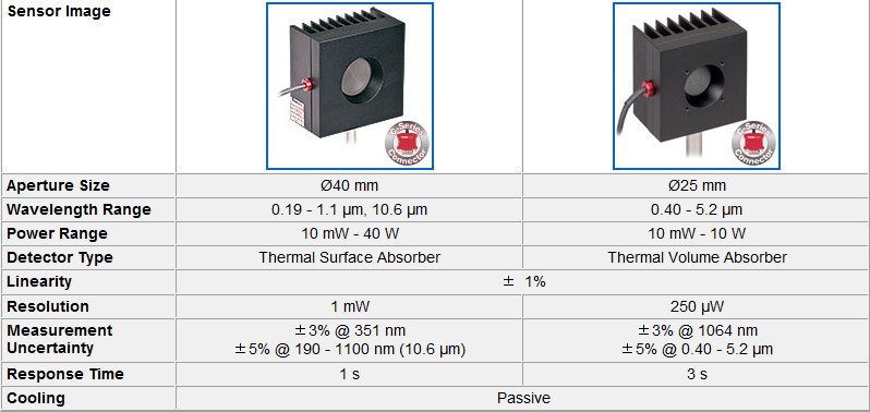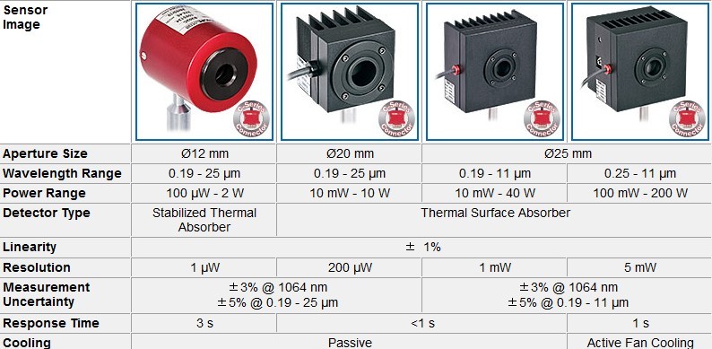 ![]() 用于準分子和YAG激光器的熱敏傳感器