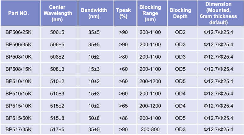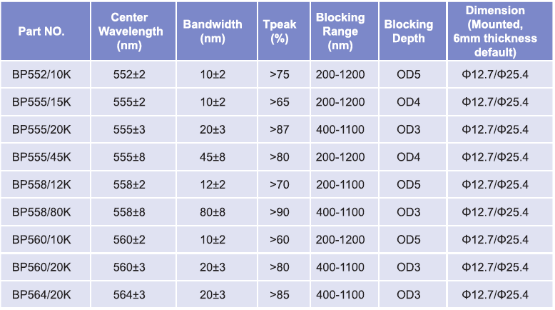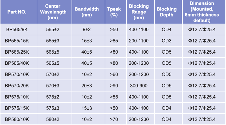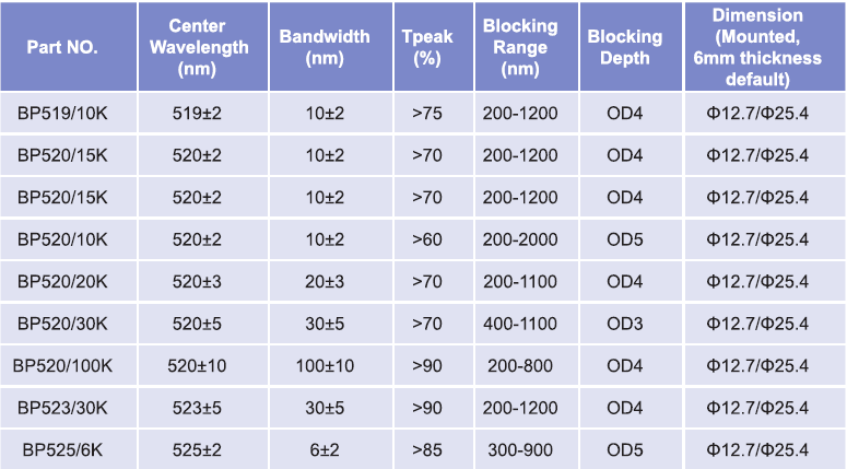 4、庫存:上萬種標準及非標準帶通濾光片產(chǎn)品現(xiàn)貨供應(yīng)