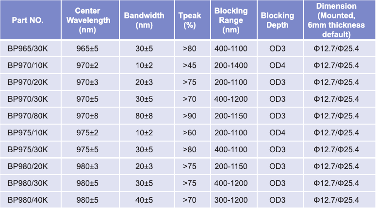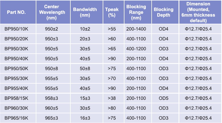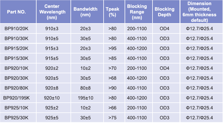 4、庫存:上萬種標準及非標準帶通濾光片產(chǎn)品現(xiàn)貨供應