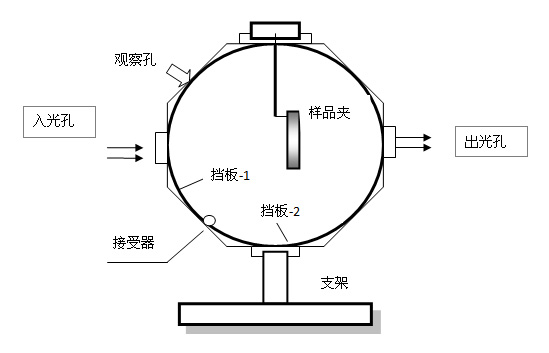 樣品孔,在球體上適當(dāng)位置裝有接收器,并在接收親器與樣品孔之間設(shè)以擋板,以防樣品的一次反射光進(jìn)入接收器。