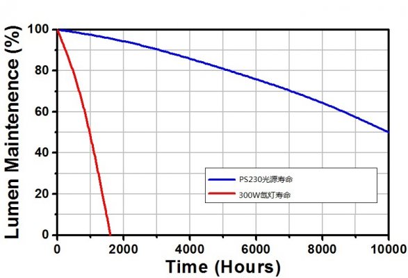 使用壽命比傳統(tǒng)氙燈長5倍(>10,000小時**)
