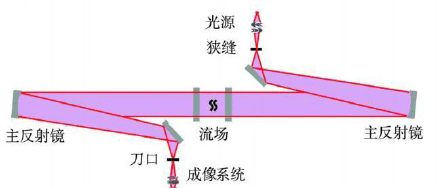 紋影儀是根據(jù)光線通過不同密度的氣流而產(chǎn)生的角偏轉來顯示其折射率,是一種測量光線微小偏轉角的裝置。它將流場中密度梯度的變化轉變?yōu)橛涗浧矫嫔舷鄬鈴姷淖兓箍蓧嚎s流場中的激波、壓縮波等密度變化劇烈的區(qū)域成為可觀察、可分辨的圖像。