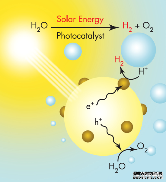半導(dǎo)體TiO2及過渡金屬氧化物、層狀金屬化合物,如K4Nb6O17、K2La2TiO10、Sr2Ta2O7等,以及能利用可見光的催化材料,如CdS、Cu-ZnS等,都能在一定的光照條件下,催化分解水,從而產(chǎn)生氫氣。然而到目前為止,利用催化劑光解水的效率還很低,只有1% ~2%。已經(jīng)研究過的用于光解水的氧化還原催化體系主要有半導(dǎo)體體系和金屬配合物體系兩種,其中以半導(dǎo)體體系的研究為深入。 半導(dǎo)體光催化在原理上類似于光電化學(xué)池,細小的光半導(dǎo)體顆?梢员豢醋魇且粋個微電懸浮在水中,他們像光陽一樣在起作用,所不同的是它們之間沒有像光電化學(xué)池那樣被隔開,甚至陰也被設(shè)想是在同一粒子上,水分解成氫氣和氧氣的反應(yīng)同時發(fā)生。當小于387nm 的紫外光照射到TiO2時,價帶上電子吸收能量后發(fā)生躍遷到導(dǎo)帶,在價帶和導(dǎo)帶分別產(chǎn)生了空穴與電子,吸附在TiO2的水分子被氧化性很強的空穴氧化成為氧氣,同時產(chǎn)生的氫離子在電解液中遷移后被電子還原成為氫氣。和光電化學(xué)池比較,半導(dǎo)體光催化分解水放氫的反應(yīng)大大簡化,但通過光激發(fā)在同一個半導(dǎo)體微粒上產(chǎn)生的電子空穴對易復(fù)合。因此為了抑制氫和氧的逆反應(yīng)及光激發(fā)半導(dǎo)體產(chǎn)生的電子和空穴的再結(jié)合,可加入電子給體作為空穴清除劑,以提高放氫效率。廢水中許多有機物是良好的電子給體,如果把廢水處理與光催化制氫結(jié)合起來,可同時實現(xiàn)太陽能制氫和太陽能去污 。